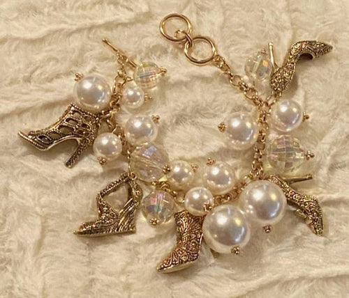 Lustrous Pearl Cluster Charm Bracelet (Antique Gold)