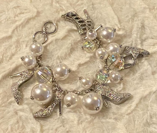 Lustrous Pearl Cluster Charm Bracelet (Antique Silver)